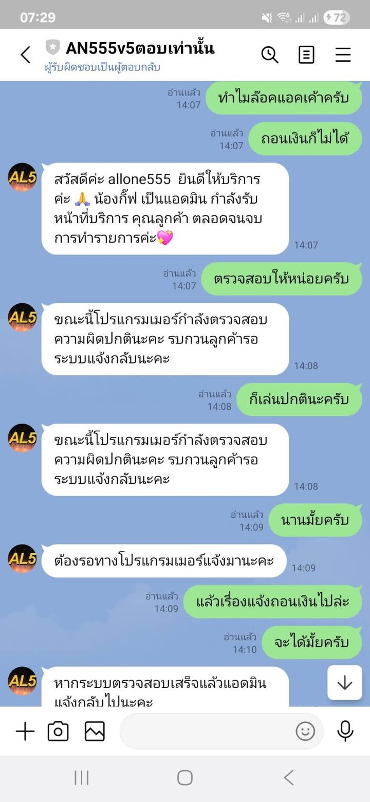 allone555 ถอนไม่ได้ 240000 บอกรอตรวจหลายวันเเล้ว สุดท้ายโดนปิดยูสหนีเลยค่ะ