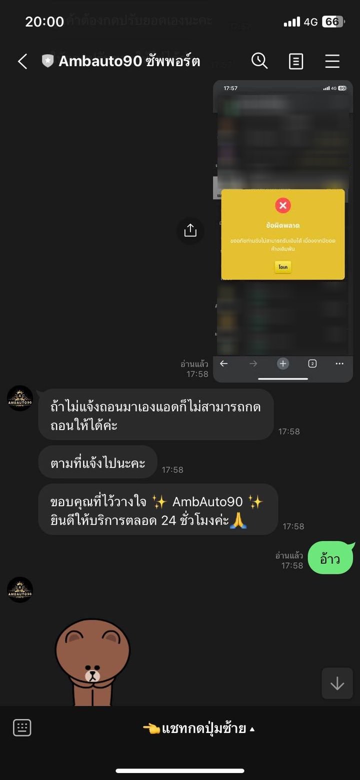 ambauto90 โกง ยอด 5,000 กดถอนแล้วยอดไม่เข้าบัญชี สักพักก็เข้าระบบไม่ได้แล้ว