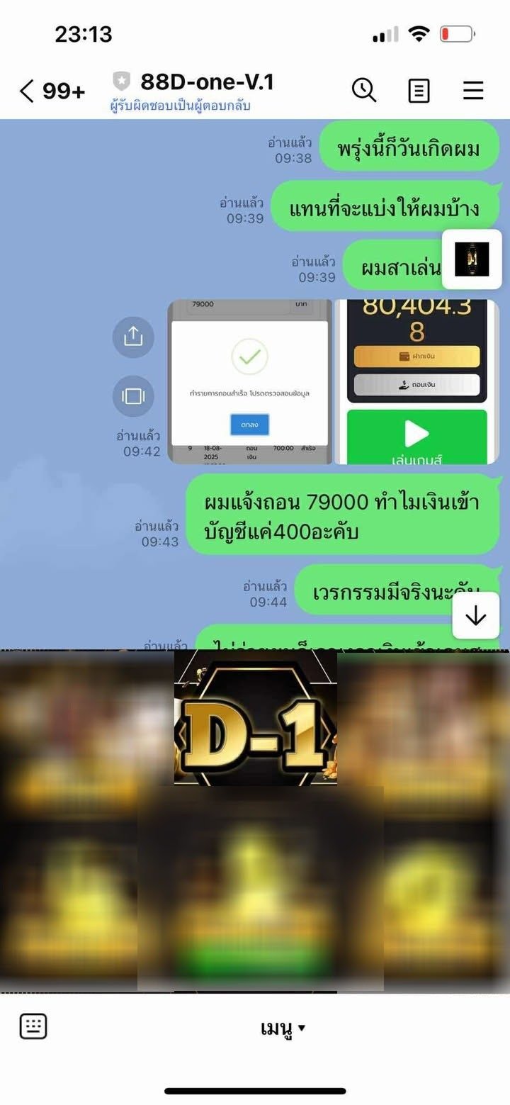 ⚠️ แชร์ประสบการณ์ D1 เล่นได้ยอด 79,000 แจ้งถอนรอทั้งคืน ไม่อนุมัติ โอนมาให้เพียง 400 บาท ใครเล่นอยู่ แนะนำให้ตรวจสอบดี ๆ