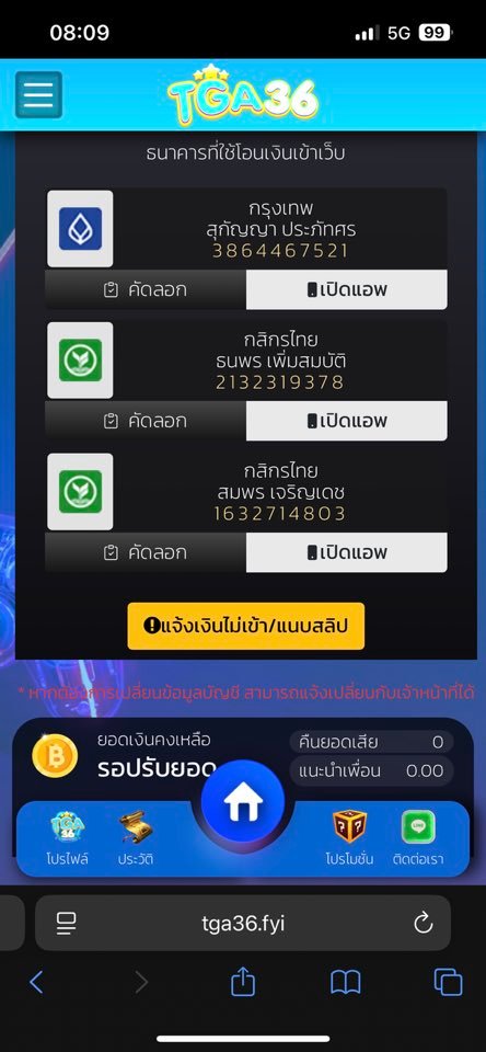 tga36 โกง ฝากเงินไม่เข้า แอดมินตอบช้า เล่นลิ้นเงินแค่ 500 ยังโกง กระจอกมาก