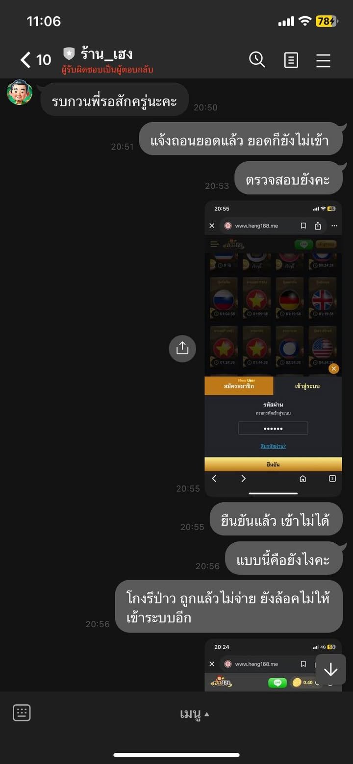 heng168 โกง ยอด 5,500 ถูกหวยไม่จ่าย บอกรอสักครู่เเล้วหายเลย สักพักโดนปิดยูส ไม่อ่านไลน์แล้ว
