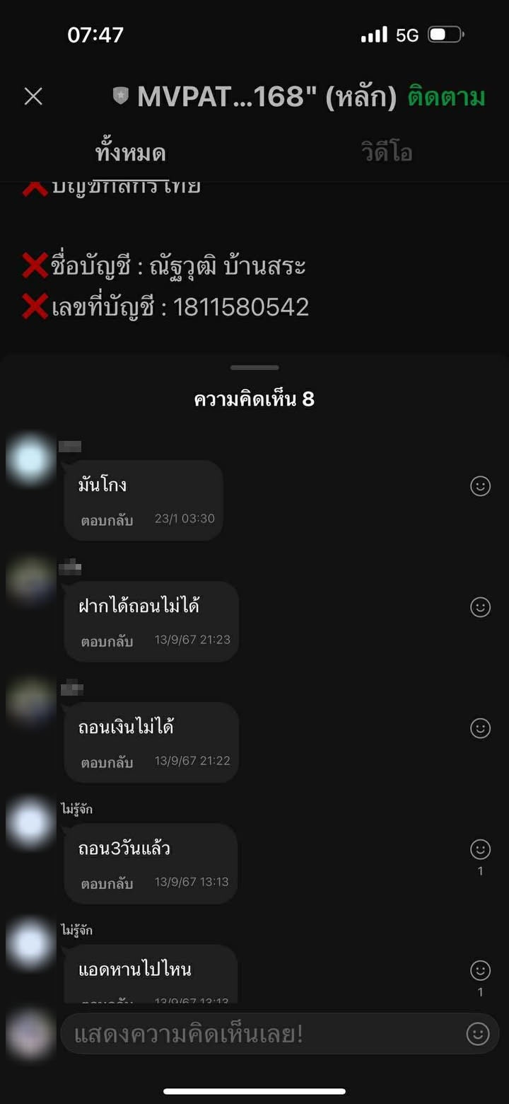 MVPATM168 โกง ยอด 32,200 เล่นได้ไม่จ่าย ทักหาแอดมินเงียบกริบ ไม่อ่านไม่ตอบ แถมโดนลบข้อมูลโดนปิดยูสด้วย