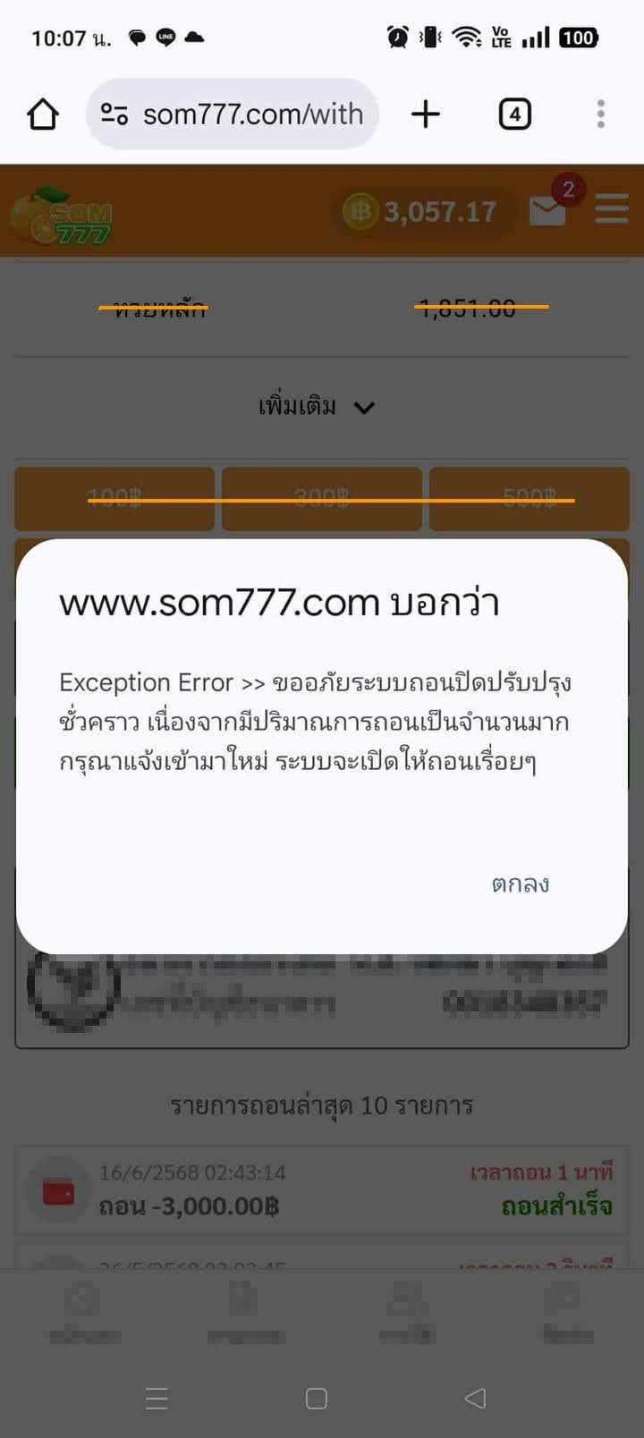 #som777 โกง ยอด190,000 ถอนไม่ได้ ทยอยถอน1000ก็ยังไม่ได้ค่ะ ฝากได้ปกติแต่ถอนกลับมีปัญหา