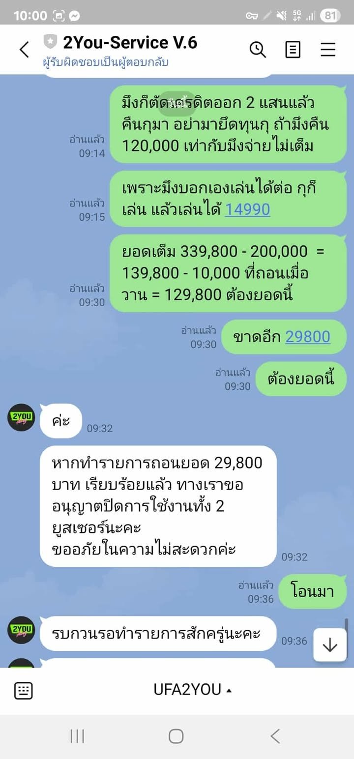 ufa2you โกง ยอด 73,400 เล่นมวยได้เว็บไม่จ่าย อ้างเล่นผิดปกติ ไม่โอนทุนคืน แบบนี้ก็มีด้วย