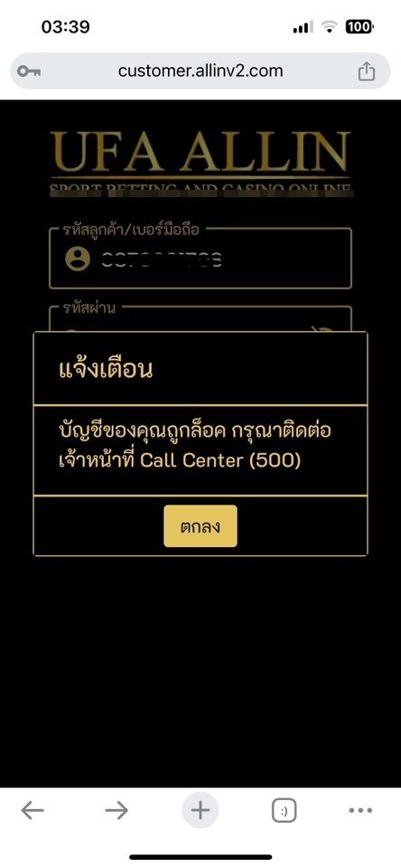 UFAALLIN โกง บอลเข้าแต่ไม่จ่าย บัญชีถูกล็อคไม่ให้เข้าระบบ