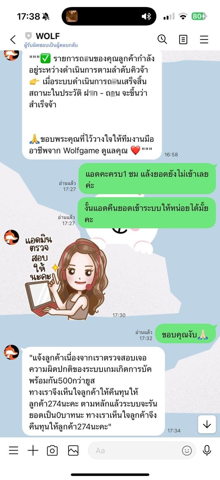 โกงยอดเงิน 3,003 กดถอนรอแล้วรออีก สุดท้ายแอดมินบอกเกมบัค ไม่จ่าย อ้างเห็นใจลูกค้าคืนทุนให้ 274 บาท
