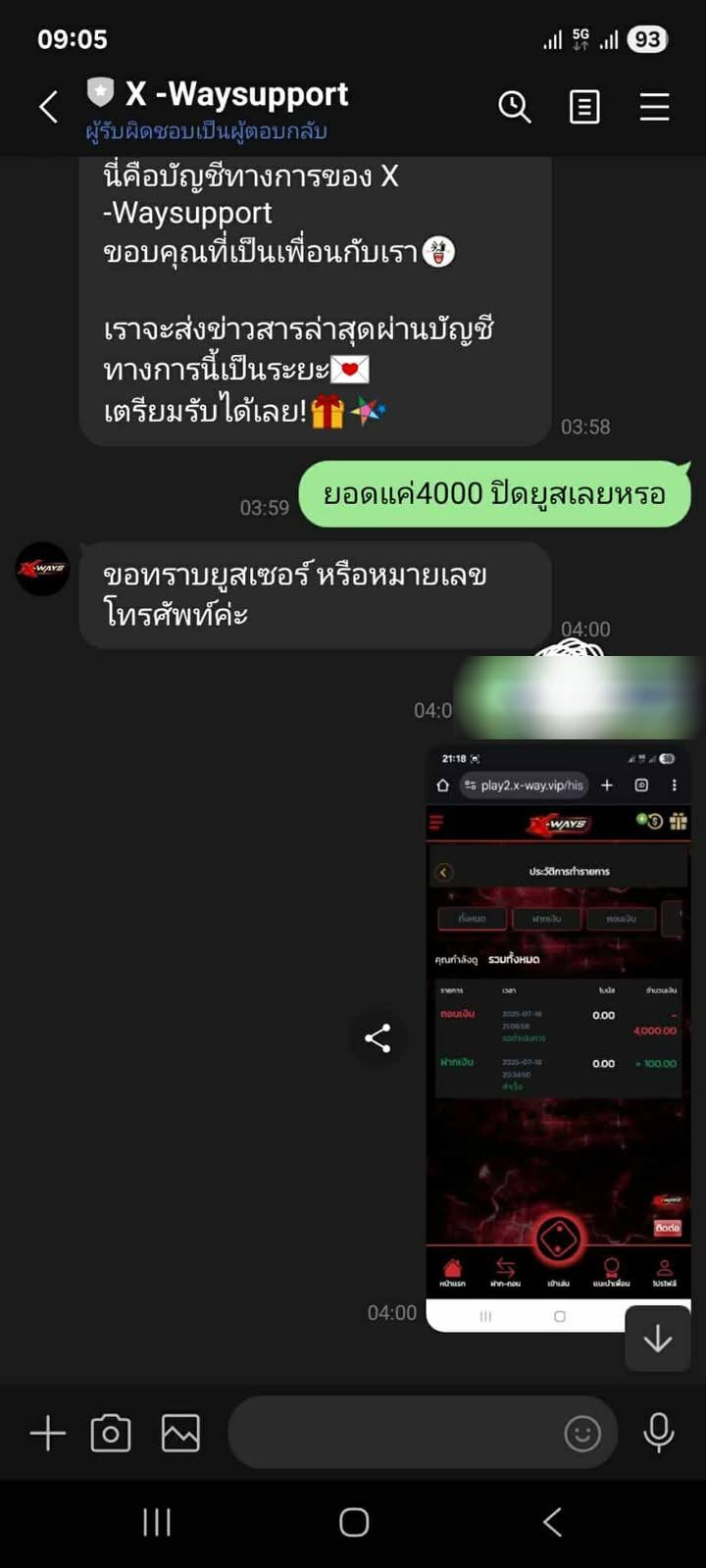 X-WAY โกง ยอด 4,000 แจ้งถอนโดนยกเลิก ทักหาแอดมินแจ้งเบอร์ไปโดนปิดยูสหนีเลย