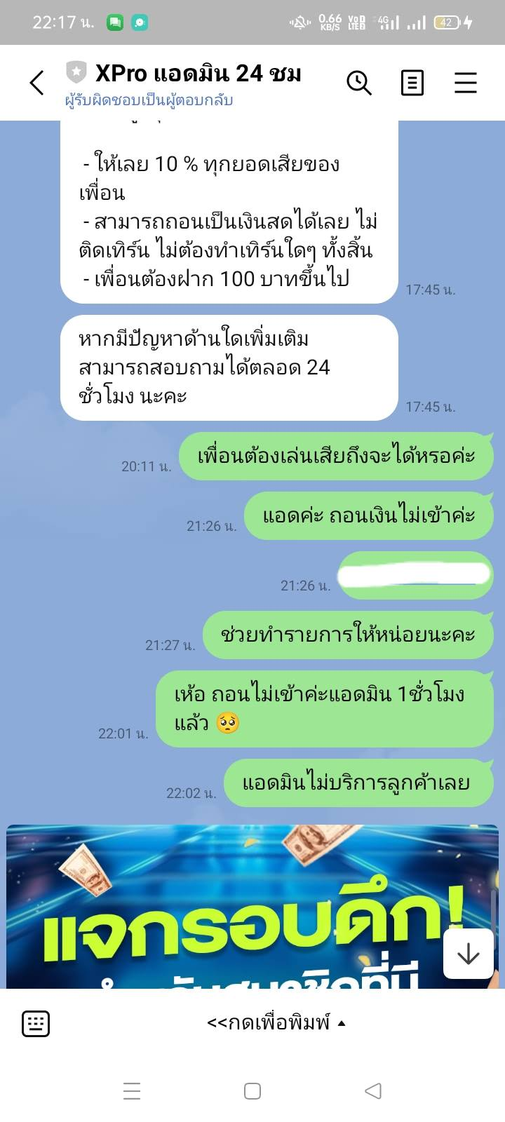 #XPRO88 แบบนี้โกงไหมค่ะ ปกติฝากถอนได้ตลอดเล่นมานาน เริ่มมีปัญหาแอดมินไม่ตอบแชทวันนี้ค่ะ
